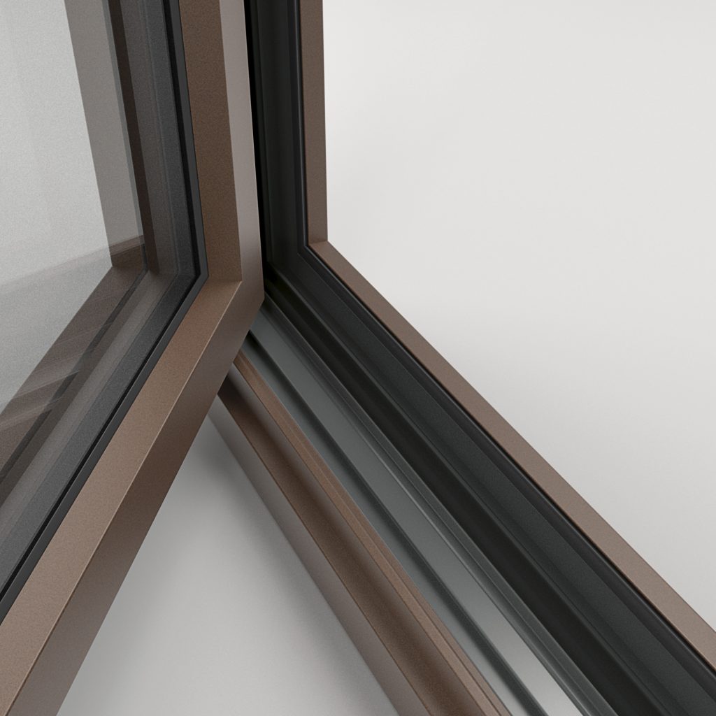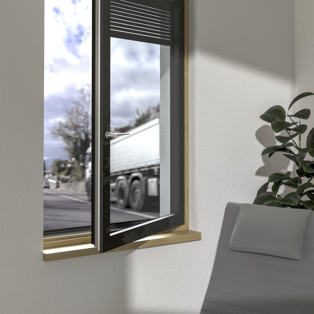 Combina PVC no interior com alumínio no exterior. Máxima durabilidade e resistência às intempéries, sendo perfeito para fachadas expostas ao sol ou zonas costeiras, sem comprometer.